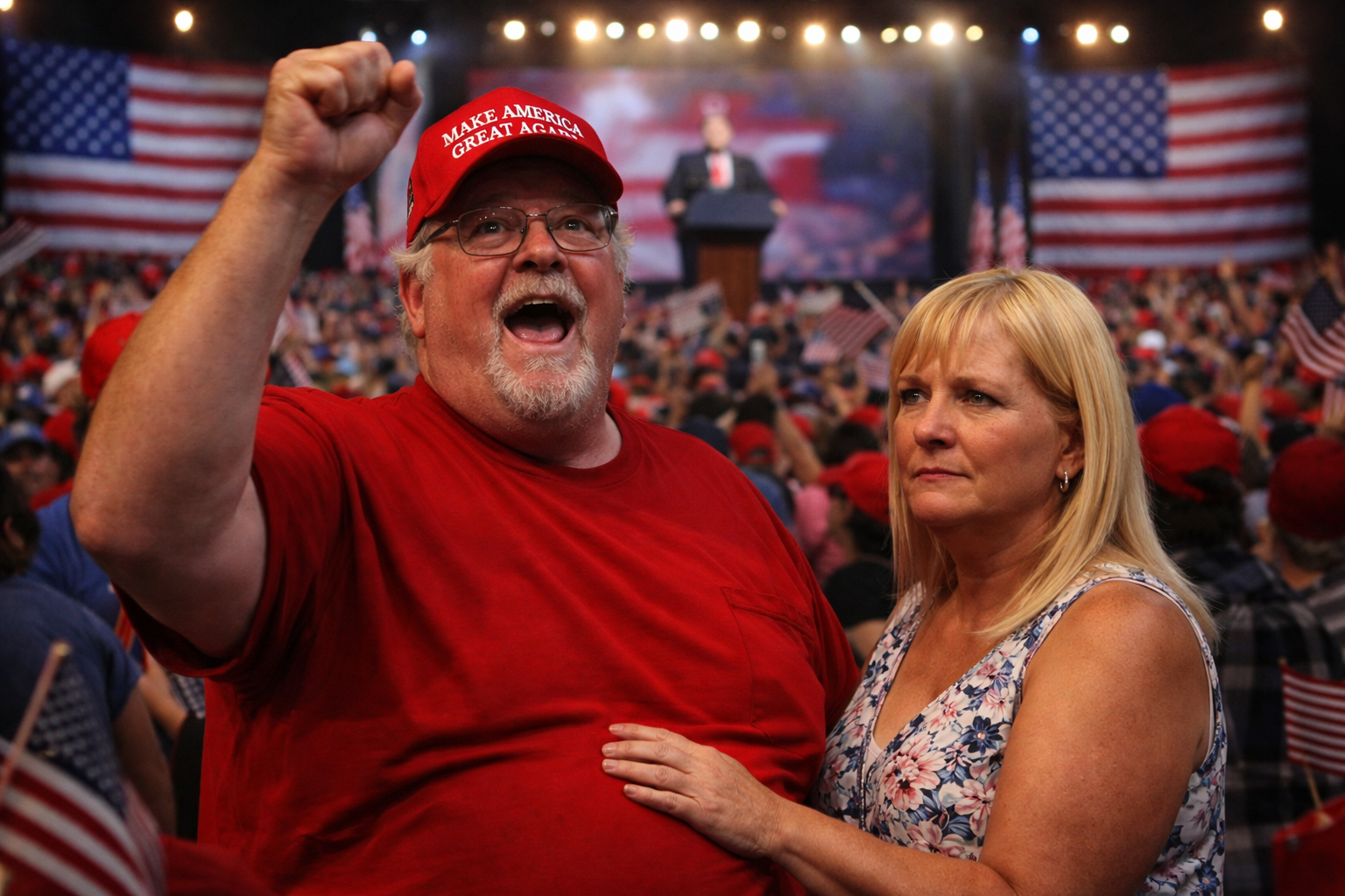 By the time Billy-Ray found himself standing shoulder to shoulder in a sea of red caps and stadium lights, he felt something he hadn’t felt in years: uncomplicated belonging. The bunker had been a project. The garage had been a statement. The Warhammer room had been a season. But this—this was a crowd moving in rhythm, chanting in unison, waving flags like synchronized swimmers of patriotism. It wasn’t concrete. It wasn’t steel. It was noise and heat and conviction.