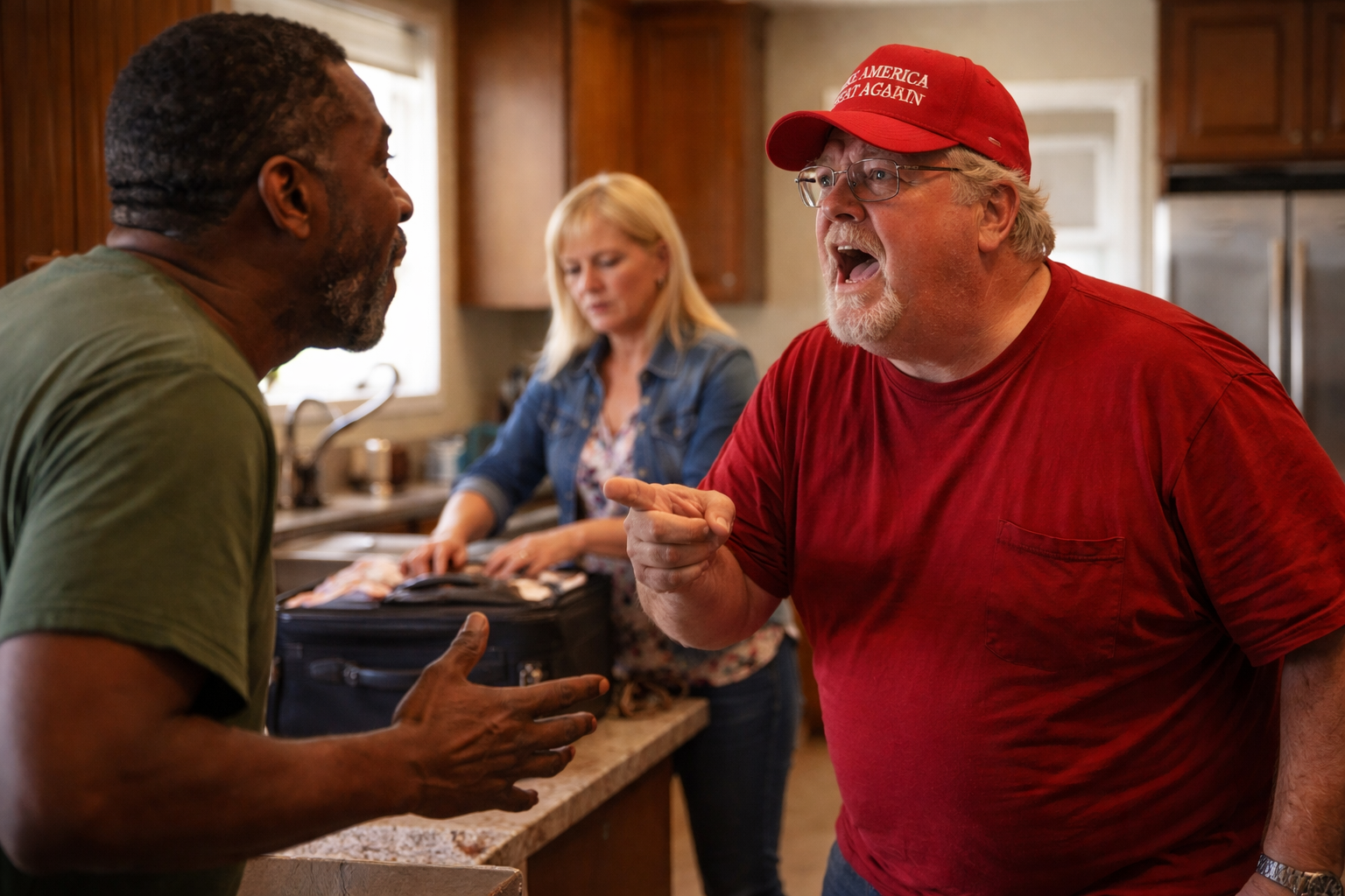 The argument with Tyrone began the way most of their disagreements did—half banter, half heat—two men who had once sweated through deadlifts and fishing trips now circling each other with words sharpened by years of news cycles. Billy-Ray had come back from another rally energized, talking fast, voice louder than he realized. He wasn’t describing policy; he was describing betrayal—how the country had been hollowed, how enemies were not just external but institutional, how you couldn’t trust anything anymore.