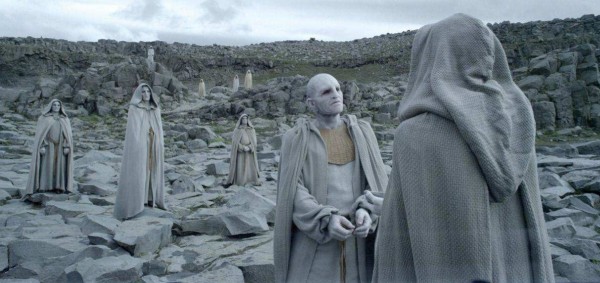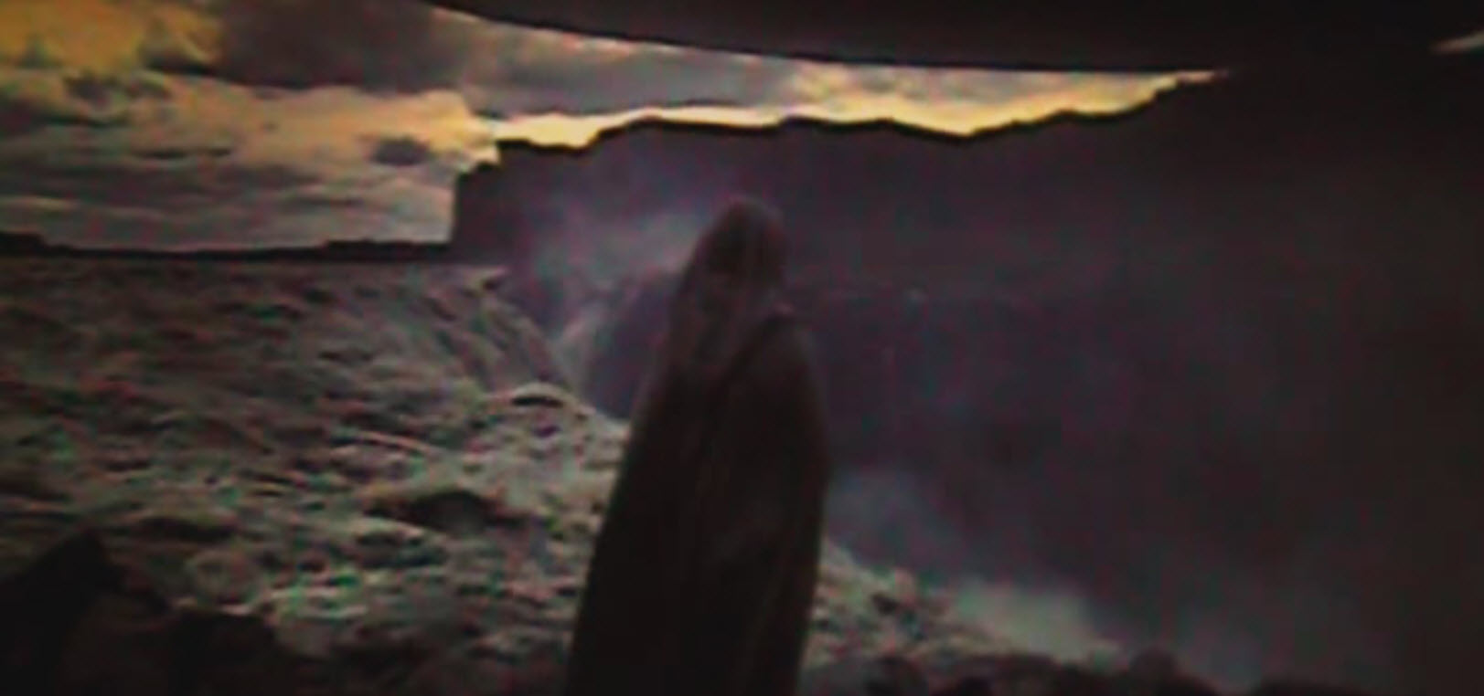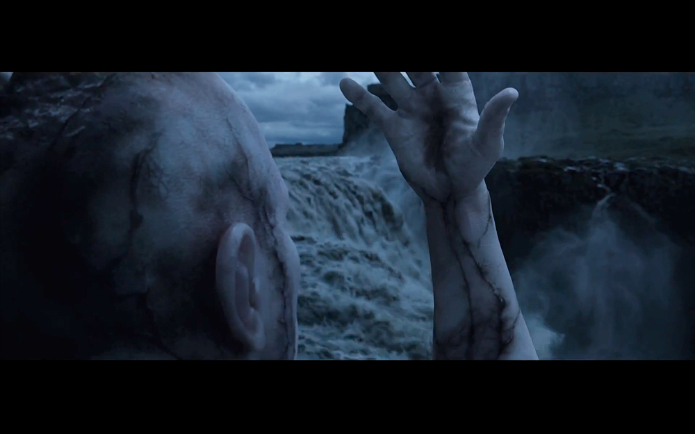 As far as I can see this shape hovers over the waterfall without some form of thrusters, which suggests the Engineer species have a means to make structures float by virtue of some convenient and obligatory anti-gravity technology. A sullen cloaked figure, with more than a casual hint of biblical unnuendo comes in to view, who walks to the edge of the waterfall. We only see that this person is close to human or humanoid, based on how it walks, and it is clear the being has an imposing quality. He’s probably quite tall. (And actually, he is not alone…)