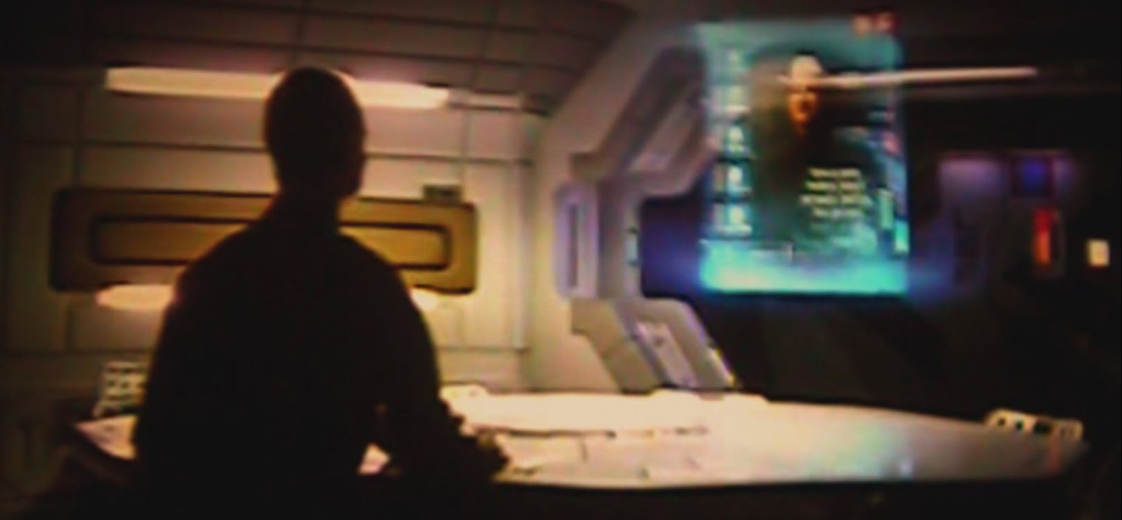 This whole “coming and finding” endeavour occurs several years later, indicating the actual voyage was quite a project in itself. The scene shows a minute speck moving against the stellar backdrop, cutting through an endless void. The speck is the Prometheus, an interstellar vessel.