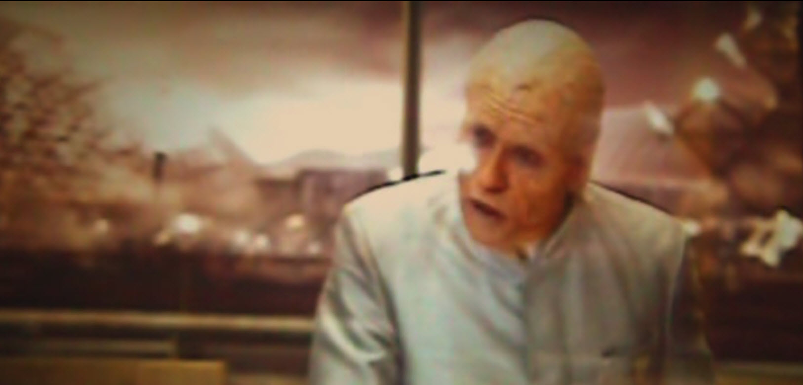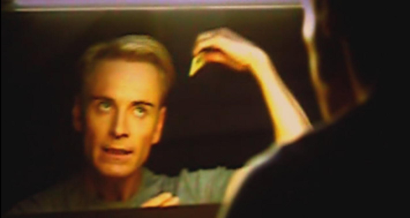 And therefore there’s two questions in the film: the guy at the beginning is simply donating himself – no stranger than the Aztecs or Incas would choose some poor bugger, at the beginning saying, “Right, you’re it, in the year you get all the girls you want, all the food you want, blah blah, and at the end of the year we’re going to take your heart, take it out, squeeze it, and we’re going to get jolly good crops and good weather next year.” It’s no more than that, he’s into a form of donation, except his DNA is so powerful, each molecule is like a timebomb.