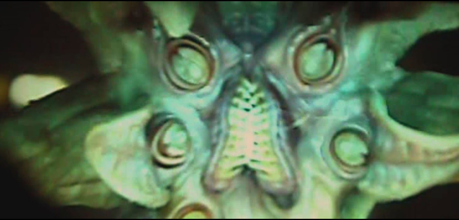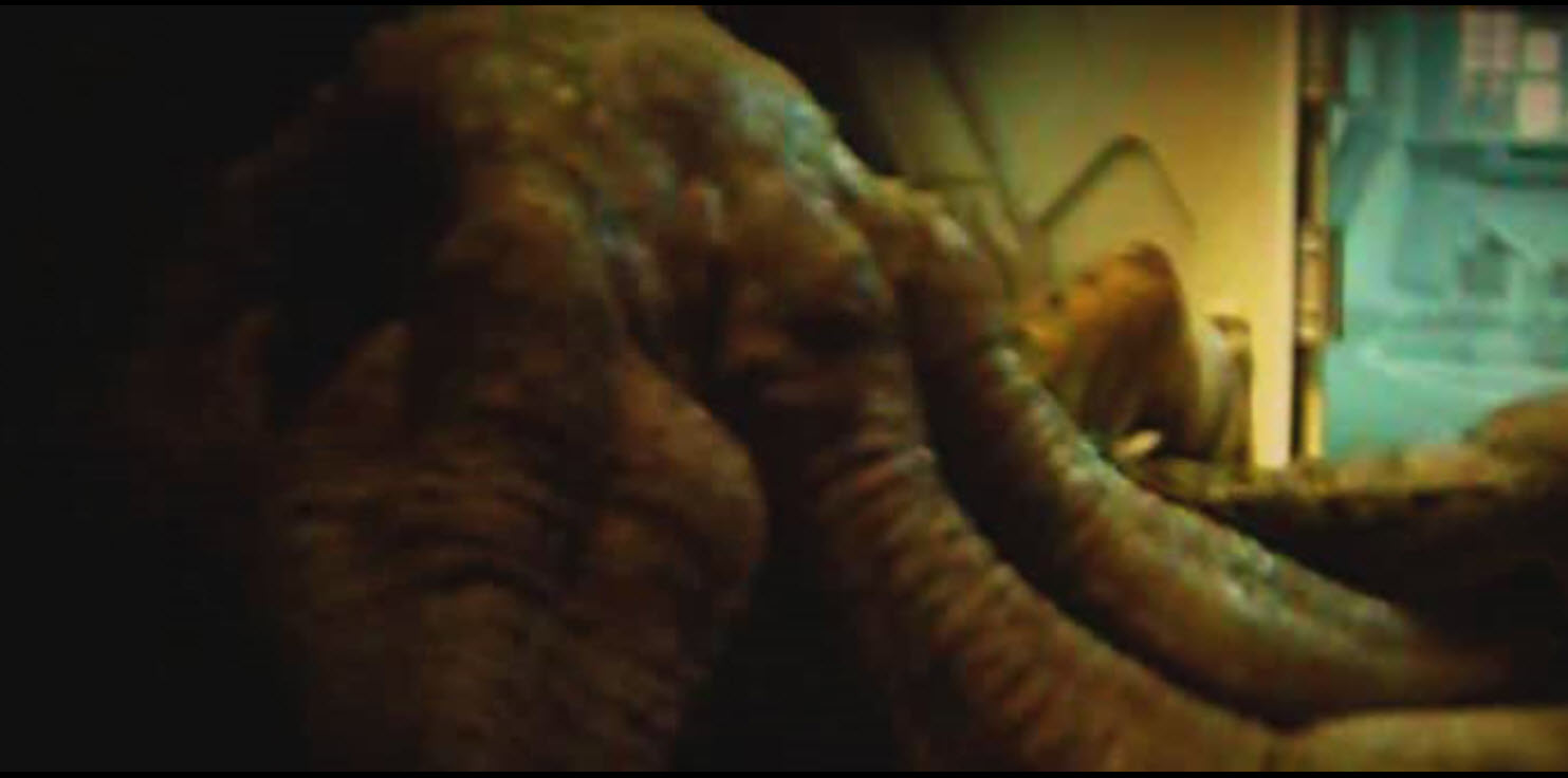The movie titles open with cells coagulating again, suggesting that somehow this death contributes to new (human?) life on the planet. The death of the Engineer might have been an act of colonization, spreading humanity on this planet. Since there were already hominids on the planet, the conclusion should be that this metaphor ties in to the Nephilim meme, but this would be my interpretation. Engineers couldn’t have initiated life – there has been life on the planet for a a billion year as evidences by geologic data. There have been primates for millions of years – this intervention would have occurred (as suggested by the further narrative) in the tens of thousands of years ago. In effect the “Engineers” would be something like an “uplifted” version of primordial humanity, and this still leaves the story open to the actual engineers – who should’t have been humans at all. There are several other explanations (life being seeded over tens or hundreds of millions of years ranges) but that would extend the movie narrative well into the “Lovecraftian” ranges of the cosmicist and transcendent.
