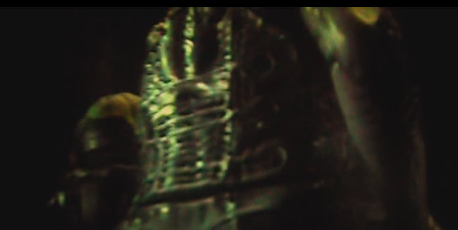 Note the captivating splendor of the shot as the Prometheus rakes down towards the gas giant satelite LV-223, piercing the very heavy cloud layer. Apocryphal statements suggest the system sporting both (unconfirmed) planets are some 40 light years from Earth. Note that the movie distinctly makes clear this planet is not LV-426, which raises the troubling question why the derelict found in the Alien movie is deposited in such an uncannily similar manner as the crashlanded derelict vessel in the movie Prometheus – and more poignantly – who the hell was flying the Alien1 Derelict? Note that it would be literally possible that the vessel found in the movie Alien might contain the fossilized remains of Elizabeth Shaw in the containment carapace we have all come to call “The Jockey”, with the head of David perched in her lap. This would be a somewhat silly idea, but who knows where the consequtive movies will take us? It would even allow for the possibility that the colonists of the Aliens movie would have retreived these same remains of Elizabeth Shaw, sporting some lethal damage to her rib cage. Let’s hope any subsequent movies will not explore this somewhat banale contingency.