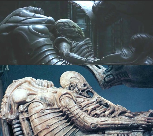 Last thing he expected was to actually find human engineers there, and even worse, “cyborg/biomechanical” ones. And the last thing he anticipated was that one crew member would be able to commandeer one of the alien vessels. This pretty much suicidal act by Elizabeth Shaw will have profound consequences – she isn’t stupid either, and has inferred some details from her own anthropological understanding, and as long as her goals and that of David/Head intersect, she intends to track back the origins of the LV-423/223 settlement.