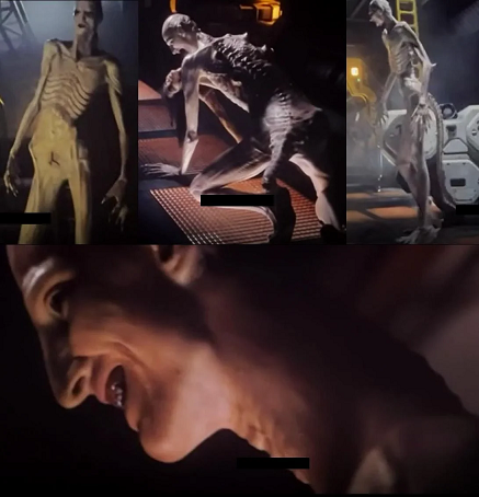 Look closely. That cunty ‘engineer’ is grinning. It’s a fucking sadist. It was just born, maybe an hour or a few hours ago (and probably less), unfolded from something barely a baby into a 2+ meter “gaunt man” with a triangular vaginahole. He must have literally sponged up any minute speck of organic material from the mining brig vessel Corbelan to actually be physically capable of this transformation. So he clearly realizes this is my IQ <90 mommy as he looks at Kay and crawls up to her and unleashings is inner cruel and murders her slowly and paifnully eating parts of her body alive, while grinning. This is an very important storytelling choice for the Alien franchise – everything about these creatures, in whatever format they assemble, is erected on an edifice of total war, cruelty, sadism, extermination. Hence I go on the record and label this piece of shit