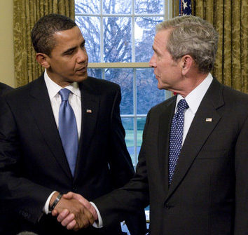 George Bush, the U.S. former president on the right, with current commander in chief of the left.